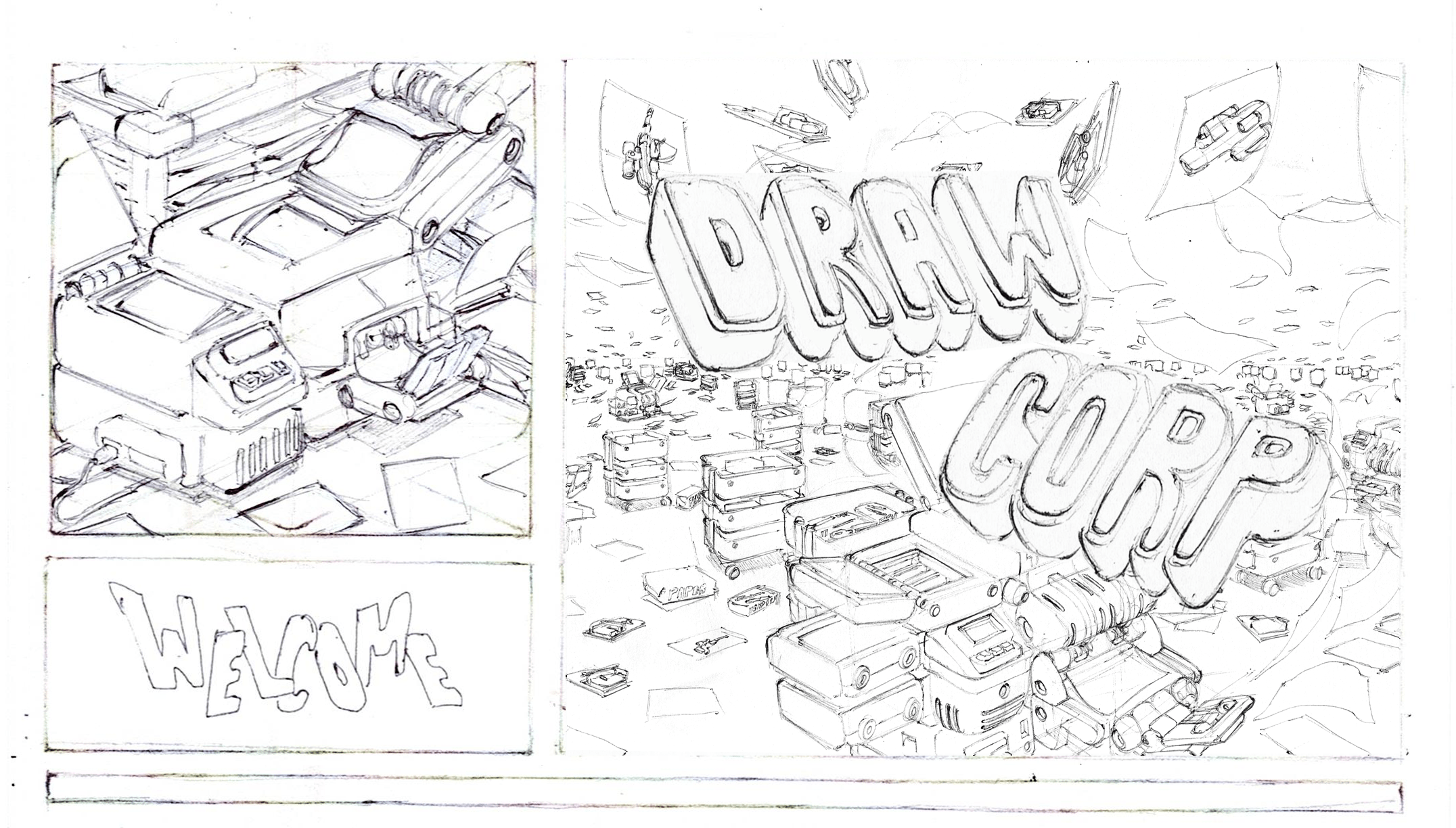 Welcome to the Draw Corporation website! I hope that you'll enjoy your time here. I am a recent college graduate and independent artist creating videos and comics in my spare time. You can find a brief preview of my work-in-progress comic in the 'work' tab. All work displayed on this website is 100% human made in the traditional way, with pen and pencil, on paper. No AI is used in the creation of my work.